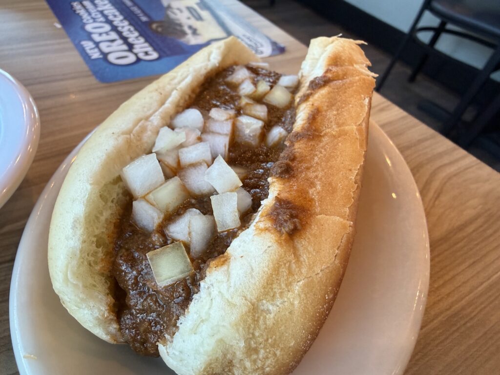 The chili has a strong cinnamon flavor which I like, but not everyone might. I tried the regular coney and also a large Greek salad. I also tried their seasonal special ice cream which has a lot of cinnamon and nutmeg in it. Very intriguing.