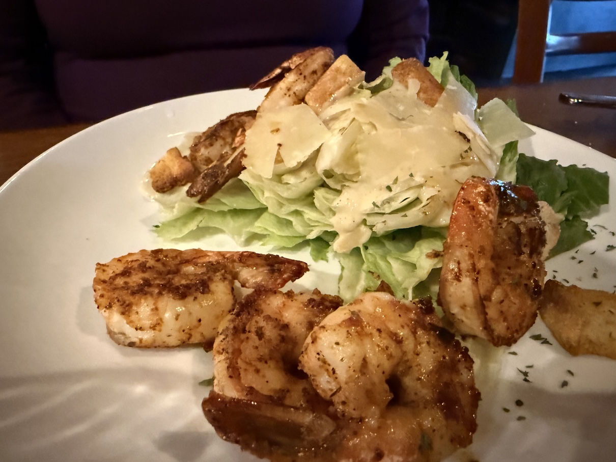 My wife had a Caesar salad with Cajun shrimp on it that was outstanding. The seasoning on the shrimp was really authentic.